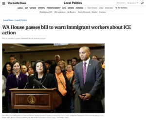 • HB 2105 is yet again another “anti-ICE bill” designed to protect illegal immigrants, even though low-end estimates of illegals in Washington State remain at several hundred thousand. The bill creates a new “Immigrant Worker Protection Act” in Title 49 RCW that regulates how Washington employers respond to federal immigration-related workplace enforcement and I-9 inspections.