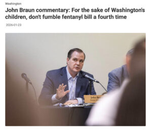 • SB 5071 updates the ‘endangerment with a controlled substance’ statute to include fentanyl or synthetic opioids. As pictured below, Senate Republican Leader John Braun (R-20th District) was the primary sponsor of that bill that unfortunately did not pass.