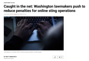 • SB 5312, sponsored by a group of Democratic senators, aimed to reduce the legal penalties for those convicted in “Net Nanny” operations — stings where law enforcement officers pose as minors to catch online sex predators. Thankfully, this bill died for the second consecutive year.