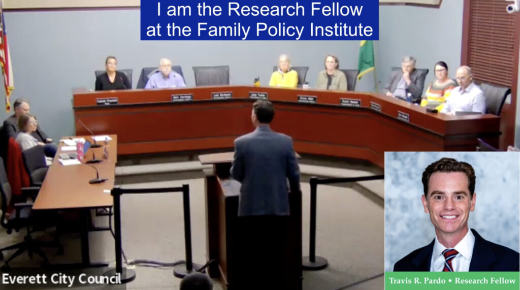 Hello, and good evening. My name is Travis Pardo. I am the Research Fellow at the Family Policy Institute of Washington, the largest voice for Christians in our state.