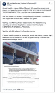 The Mayor of Everett, Washington made national news by a directive against ICE. ICE responded in the image published below from its X page. In support of ICE, here is the text of the Public Comment given before the Everett City Council by Travis Pardo, FPIW Research Fellow, at 6:30pm on March 4th, 2026. The Mayor was also present.