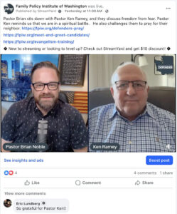 Our own CEO Pastor Brian Noble has launched a new ministry. Each morning on our Facebook page, you can see his Daily Devotion on a key Scripture passage in order to encourage, uplift, and strengthen our hearts for the cultural battle. “We are changing our hearts so we can change the public square,” he says.